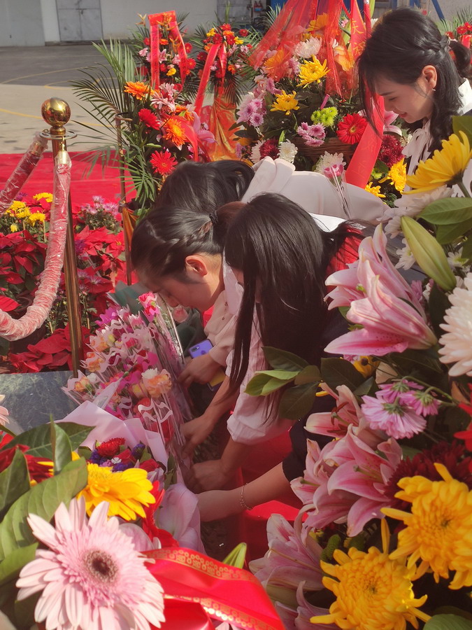 ▲綠志島總經理賴高平先生為嘉賓寫花籃語